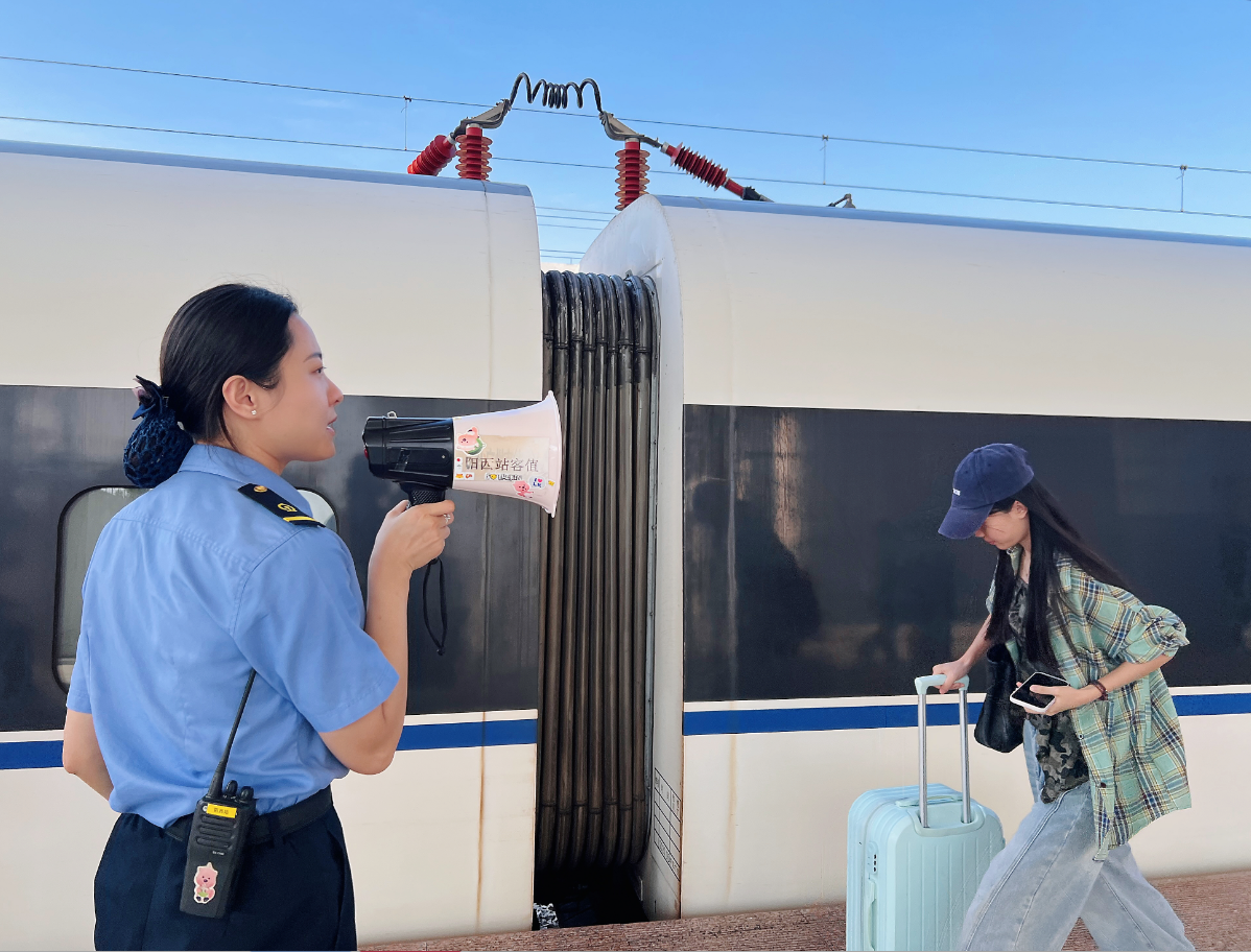2013年参加工作的她,这已是她经历的第12个国庆“黄金周”运输。从普铁车站到高铁车站,她见证了钢铁巨龙的一次次提速,见证了站房的旧貌换新颜,更见证了无数旅客从“走得了”到“走得好”的幸福变迁,但她眼神里的专注与热忱,从未改变。
