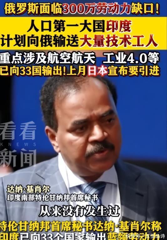 俄罗斯被印度“占领” 俄罗斯的劳动力短缺已经到了很严重的地步。 根据俄罗斯劳动部的预测,到2030年该国的劳动力缺口将达到310万,相当于现有劳动力总人口的4%。 而印度敏锐地抓住了这个机会。 10月初,基肖尔在喀山论坛上明确表示,特伦甘纳邦已经开始针对性培训,重点就是俄罗斯急需的航空航天、制造业和“工业4.0”领域技能。